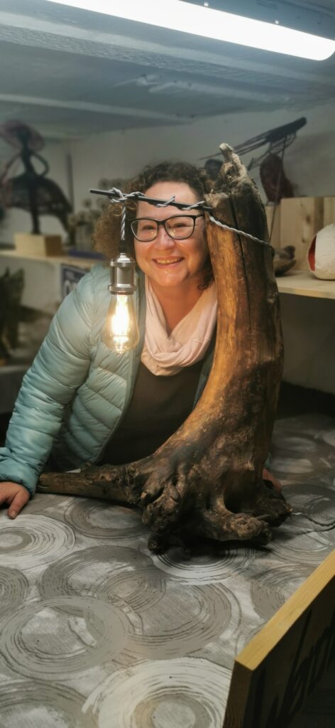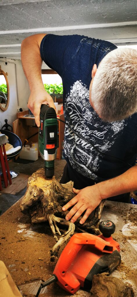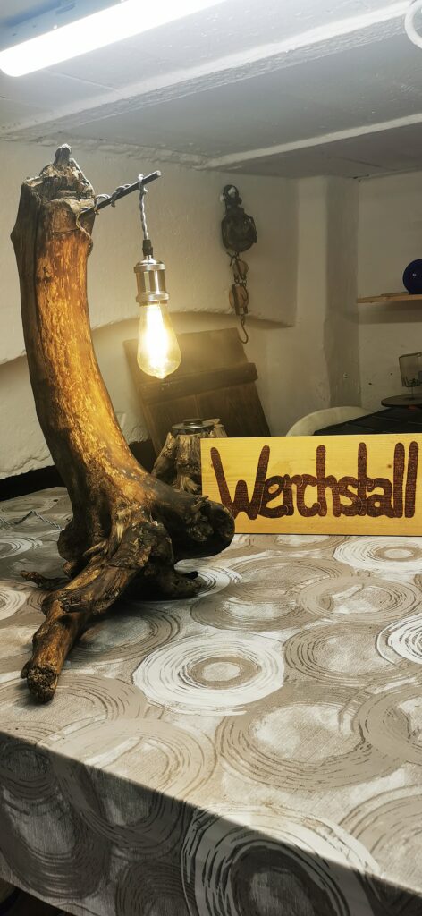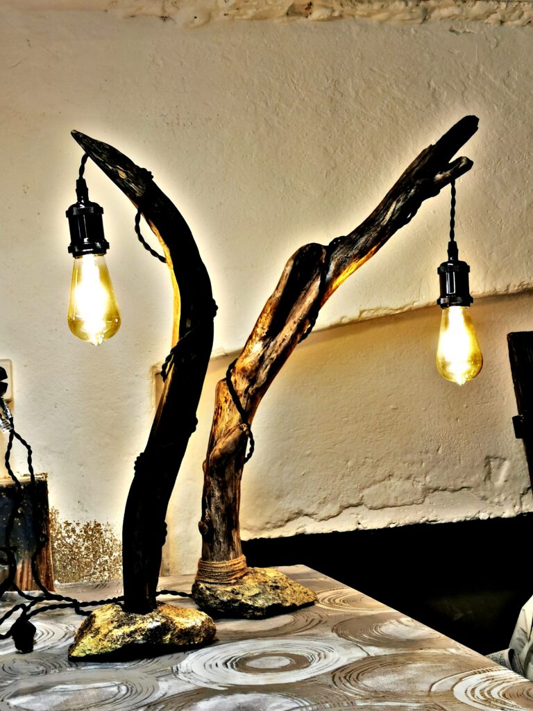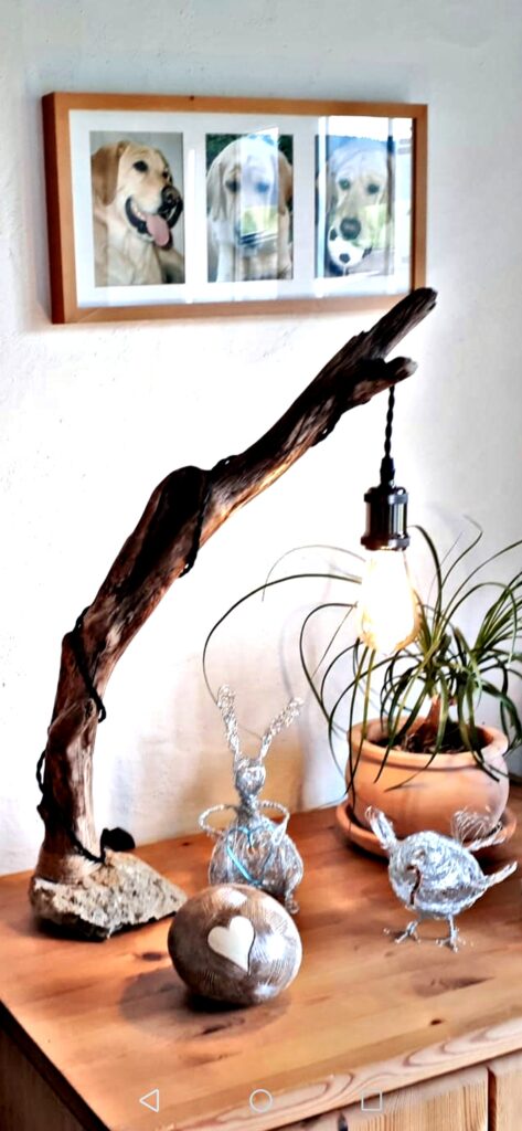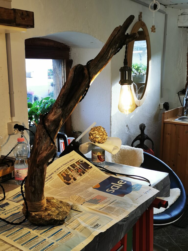Schwemmholzlampe mit Natursteinsockel – Oktober 2021